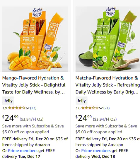 The mango-flavored jelly stick is rich in concentrated mango and vitamin C, helping you regain your energy. Meanwhile, the matcha-flavored jelly stick offers a fresh matcha aroma that can help boost focus. I’ve included a link below. Now that you know the story behind these products, you might want to check them out. They are available on Amazon. Take a look!